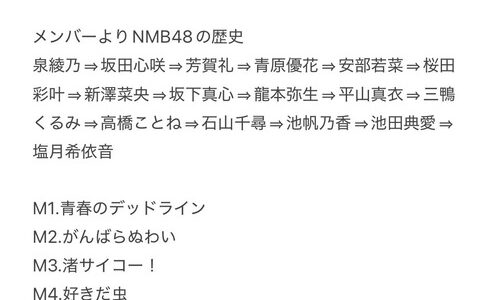【NMB48】「NMB48 15th Anniversary LIVE “Thank you for your love”」セットリスト