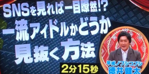 平成ノブシコブシの徳井健太「自分より格上の人との写真をSNSに上げてフォロワー数稼ぐアイドルは偽物。5・6年で消える」