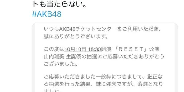 【悲報】AKBオタ「2年連続で生誕祭落選、チケセン変わってから通常公演もコンサートも当たらない。」【AKB48山内瑞葵】