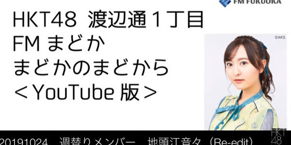 【動画】FM福岡「HKT48 渡辺通1丁目 FMまどか まどかのまどから YouTube版」週替りメンバー : 地頭江音々(2019/10/24放送分)/ HKT48[公式]