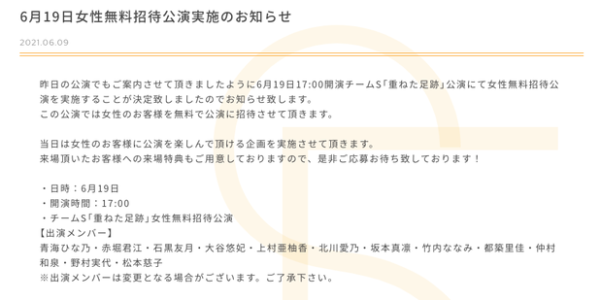 NEWS| | 6月19日女性無料招待公演実施のお知らせ|SKE48 OFFIC…