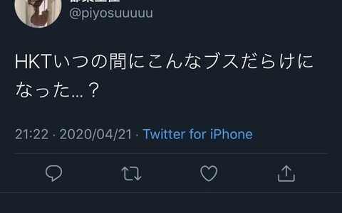 「HKTいつの間にこんなブスだらけになった…?」←こいつが解雇されずにいまだに現役アイドルでいる事実