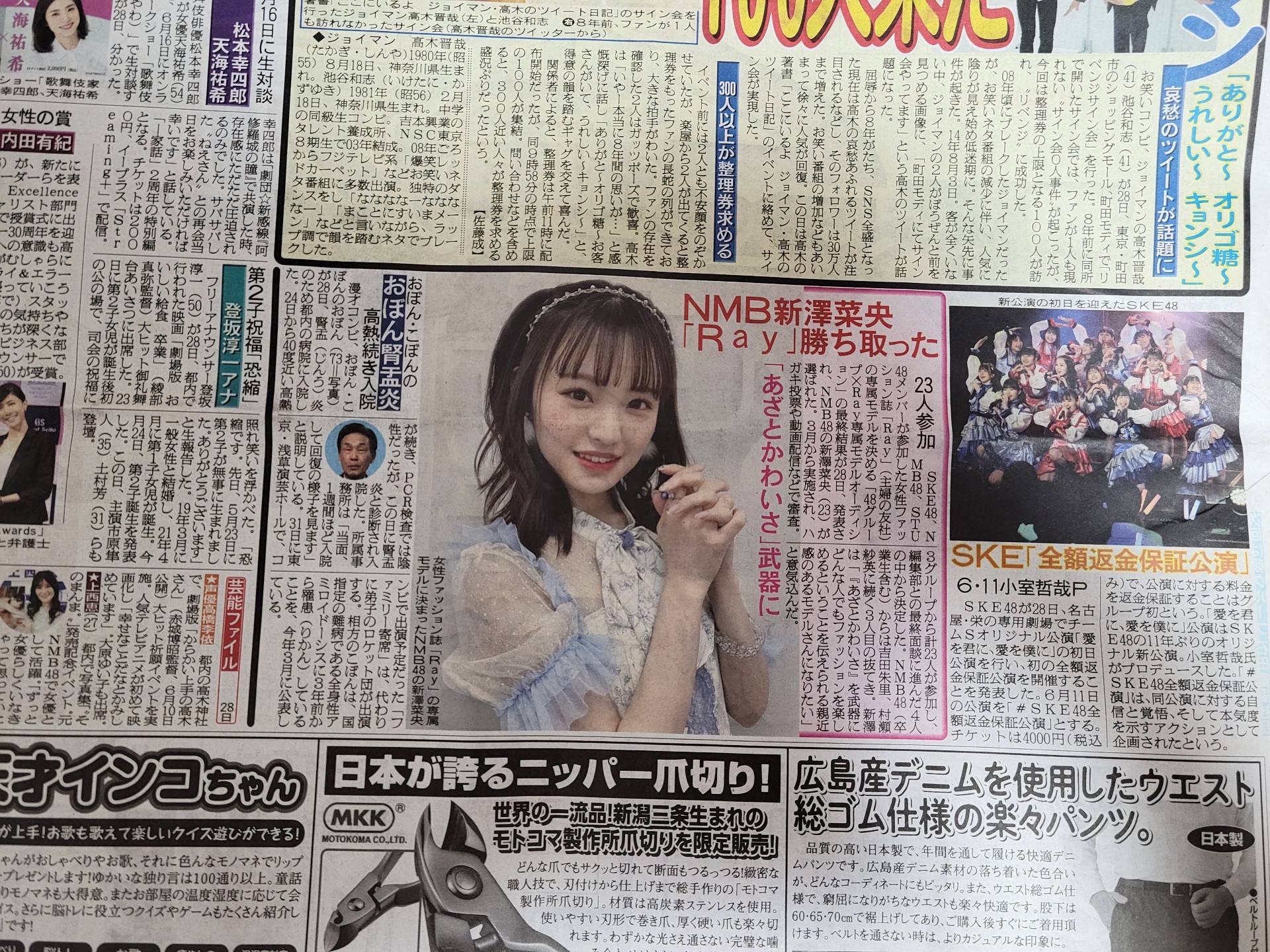 【悲報】SKE48新公演の記事がNMB新澤菜央のRayモデルの記事より小さい