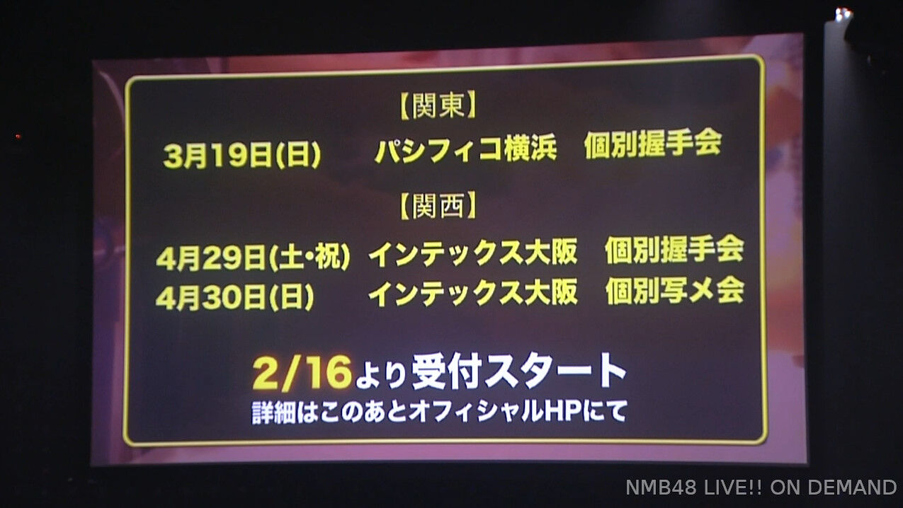 4/30(日) インテックス大阪『個別写メ会』2/16(木)より受付スタート#NMB48 #夢中雷舞公演 pic.twitter.com/Amy7GZQnal