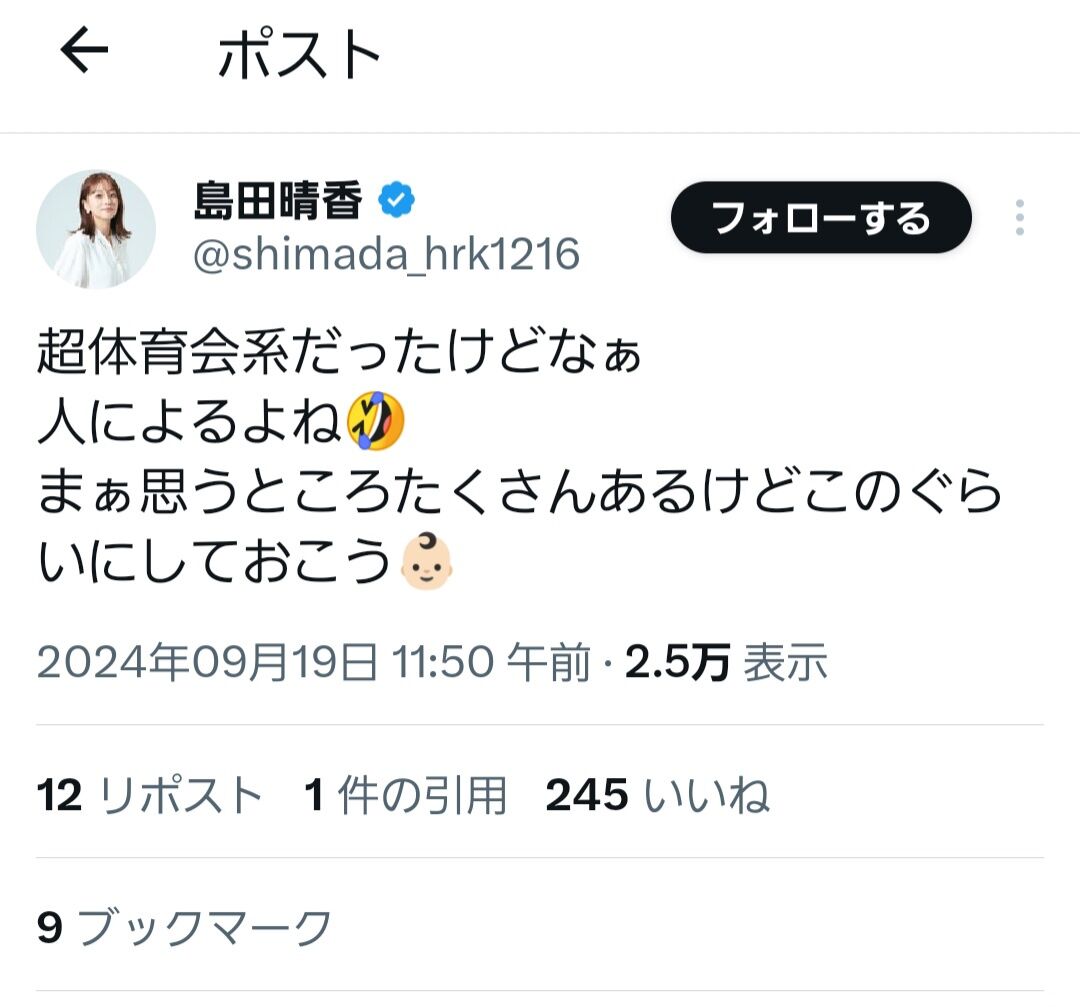 島田晴香さん、意味深なポストをする…