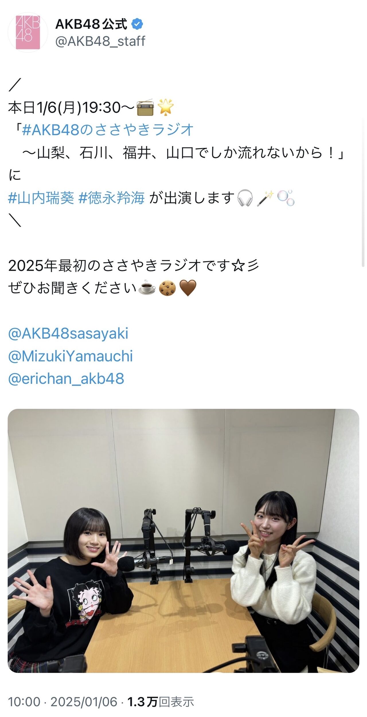 AKB公式垢さん新年早々間違える