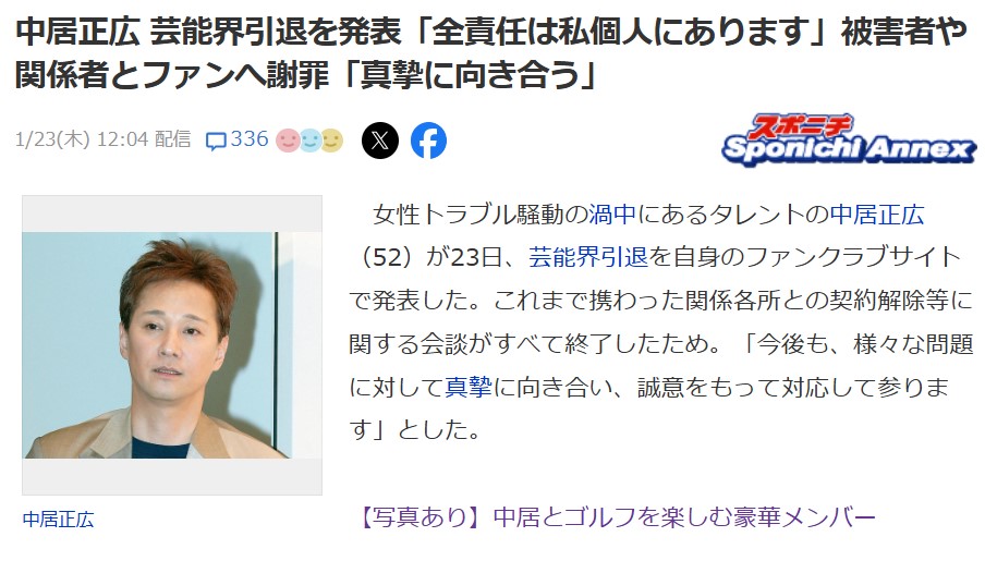 【速報】中居正広、芸能界からの引退を発表!!!!!