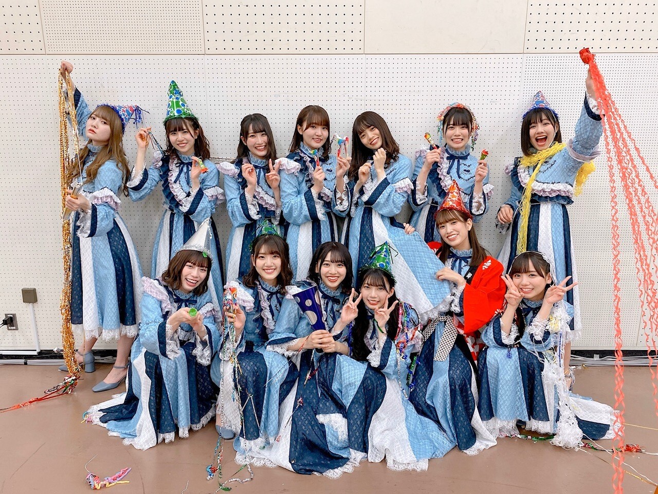 紅白歌合戦のエンディングが終わって急いで楽屋に戻ったら23時57分で、そこから急いでクラッカーをみんなで持って、年越しジャンプのリハーサルまでして、年越しジャンプをしたのですが、ちゃんと揃わず、結局2回しました笑揃わなかったのはカウントダウンしてくれるスピーカーのせいだとみんなでスピーカーに文句を言っている様子の写真笑