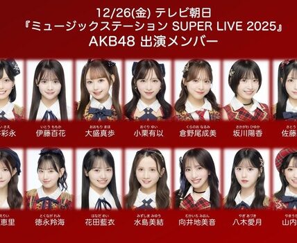 AKB48まとめ 【速報】AKB48 テレビ朝日「Mステスーパーライブ」出演者発表キタ━━━(゚∀゚)━━━━!!【12/26(金)『MステSUPERLIVE 2025】 akb4839 2025年12月20日