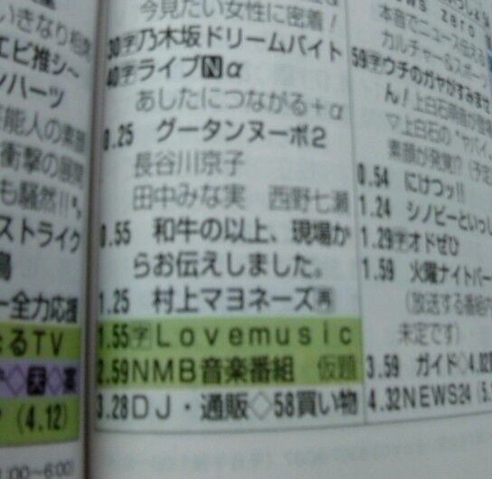 カンテレの深夜に「NMB音楽番組 仮題」てのが載ってたけど何だろうな