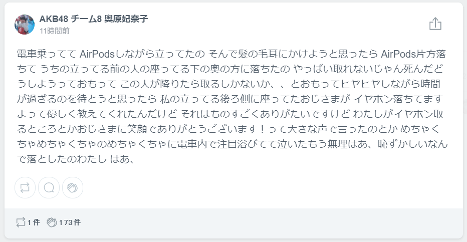 イヤホン落ちてますよって優しく教えてくれたんだけど