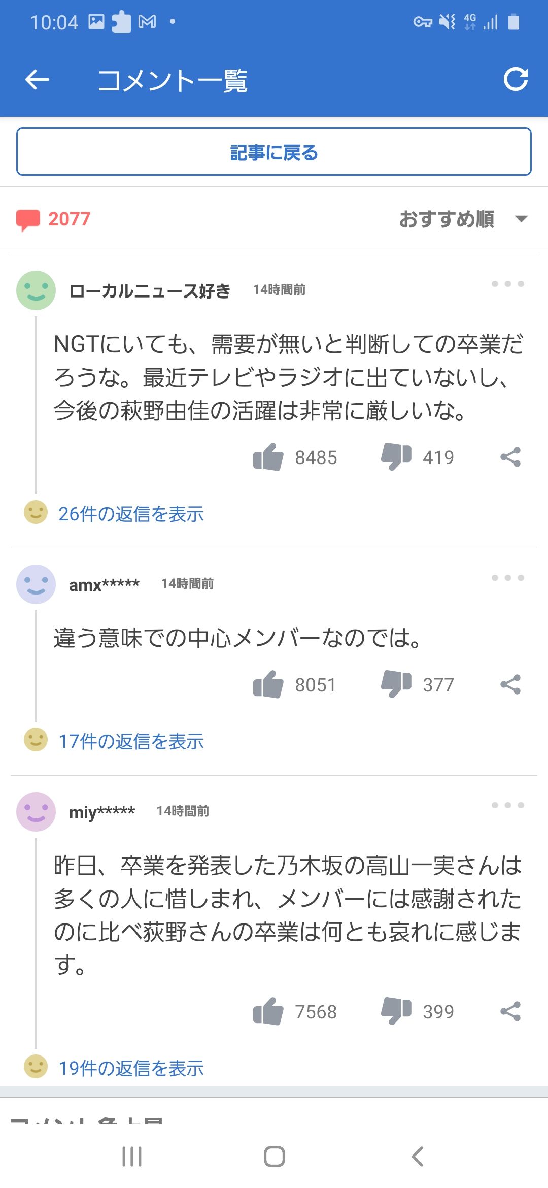 【悲報】荻野由佳卒業発表へのヤフコメの反応wwww