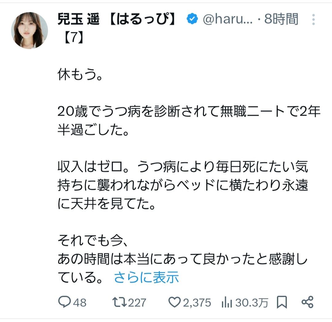 【悲報】兒玉遥さん、活動休止の2年半は無収入だった模様…【元HKT48はるっぴ】