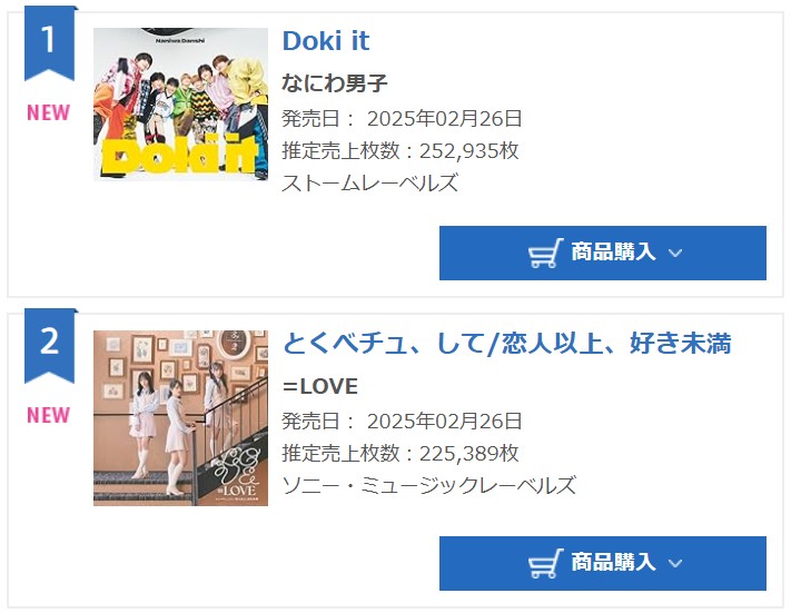 【オリコン】=LOVE18thシングル「とくべチュ、して/恋人以上、好き未満」初日売上225,389枚で2位【イコラブ ・イコールラブ】