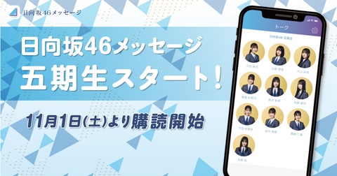 https://www.hinatazaka46.com/s/official/news/detail/O10022111月1日(土)0:00より、日向坂46五期生が「日向坂46メッセージ」の購読対象メンバーに加わります。