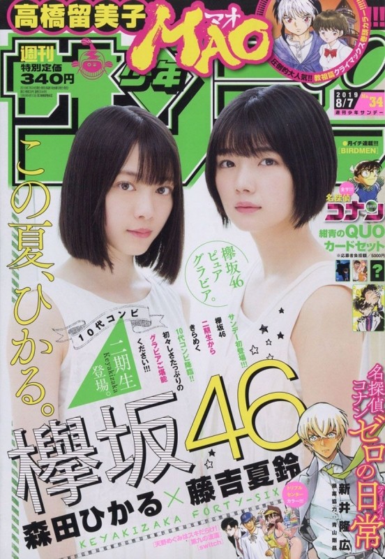 【欅坂46】森田ひかる&藤吉夏鈴が表紙!『週刊少年サンデー』本日発売!