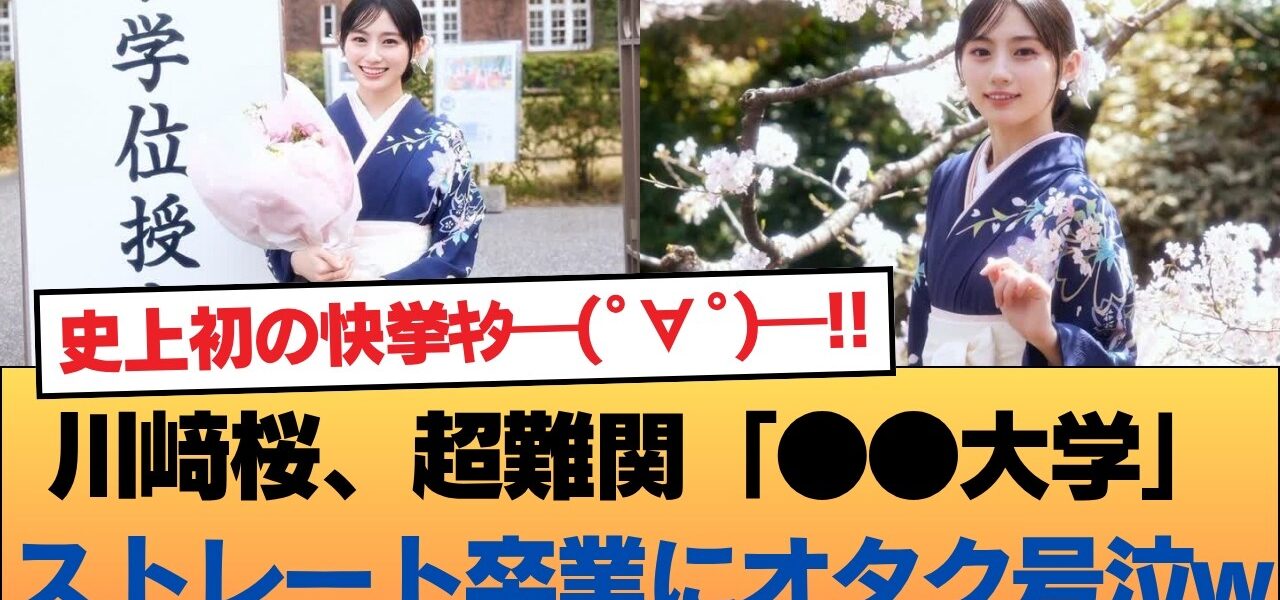 【乃木坂46】史上初の快挙キタ━(゚∀゚)━!! 川﨑桜、超難関「●●大学」ストレート卒業にオタク号泣ww「毎日泣いてた…」極上すぎる袴姿も大公開! #乃木坂46 #乃木坂46のスター