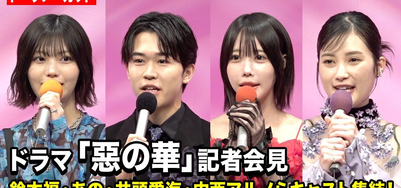 鈴木福、あの、井頭愛海、中西アルノ(乃木坂46)が2日、都内で行われた9日よりテレビ東京にて放送開始のドラマ『惡の華』(毎週木曜 深0:00)の記者会見に出席した。