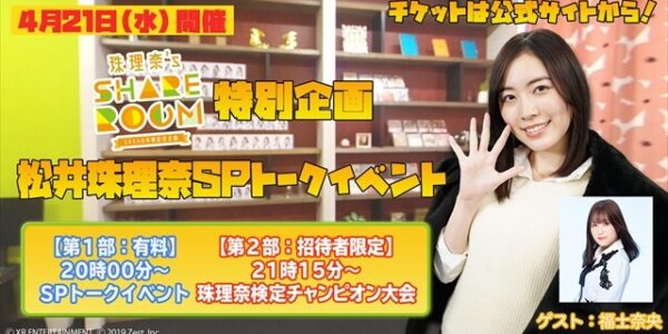 NEWS| | 4/21(水)「珠理奈’s SHARE ROOM」特別イベント開…