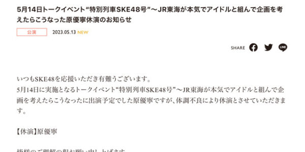 【悲報】17期研究生小濱心音、謎の体調不良?で開演65分前休演→代役が開始時間に間に合わず・・・【おかえりちゃん】
