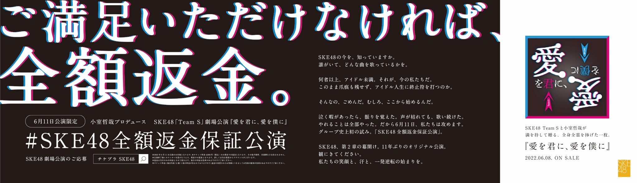 #SKE48 の #全額返金保証公演 GOで企画させていただきました。各所で話題になっていますが、メンバーの熱量と覚悟をストレートにアクションにした企画です。急成長中の小林がクリエイティブディレクターを、SKE48に思い入れの深い小堀がビジネスプロデューサーを務めました。公演、すごいので、ぜひ。 pic.twitter.com/scVExv5a8Z
