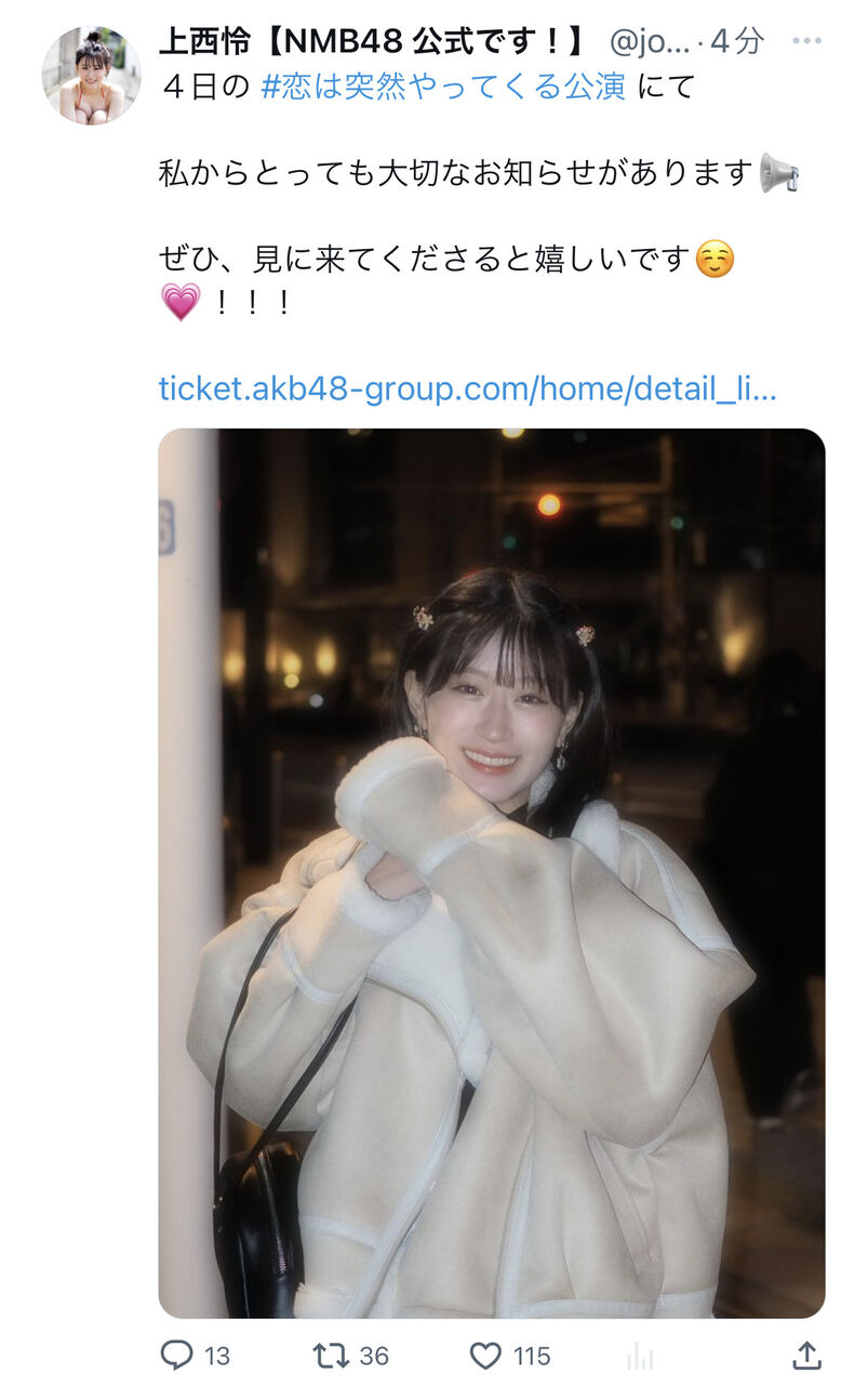 【速報】上西怜卒業発表