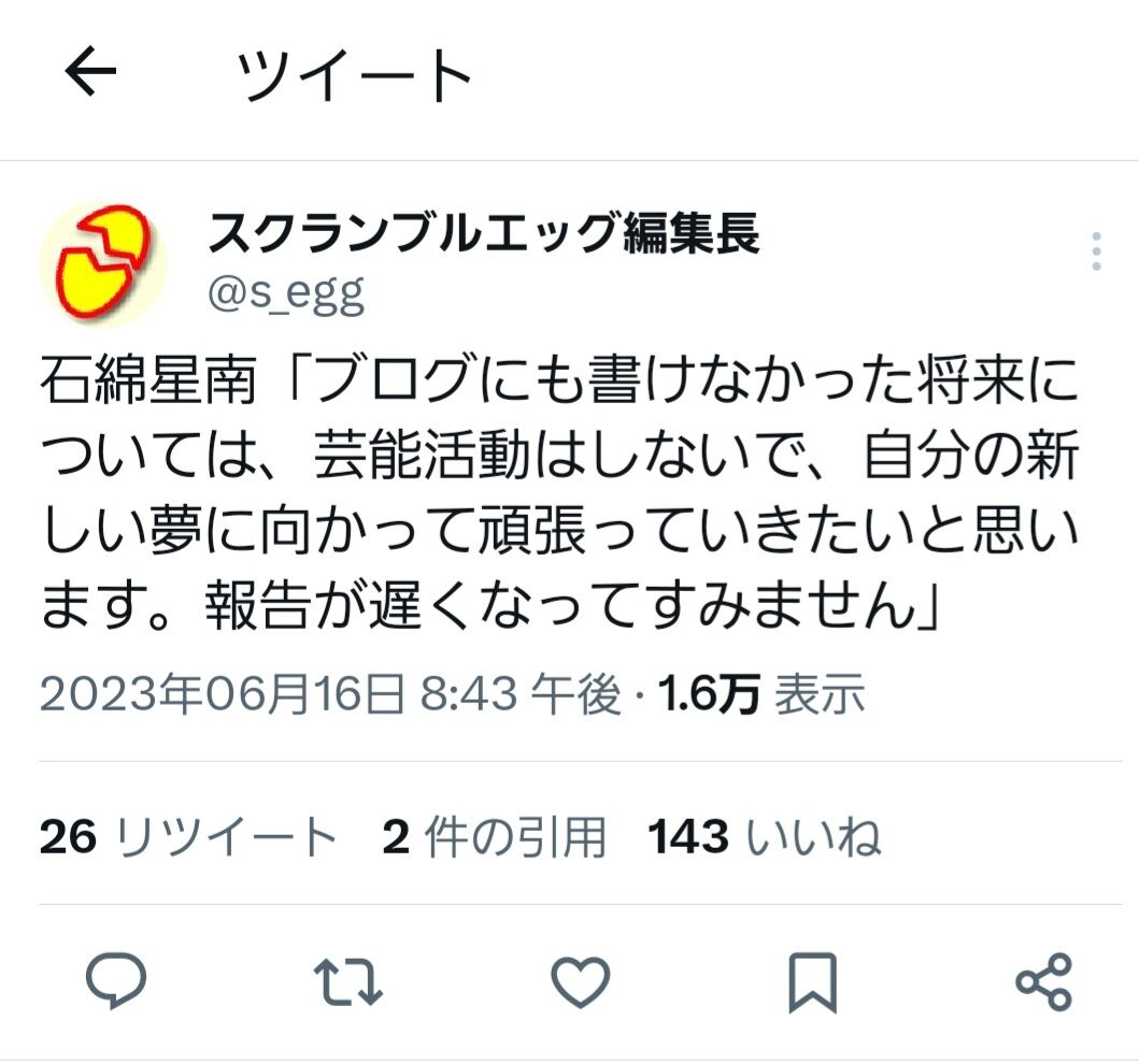 【悲報】石綿星南さん、芸能界引退へ…
