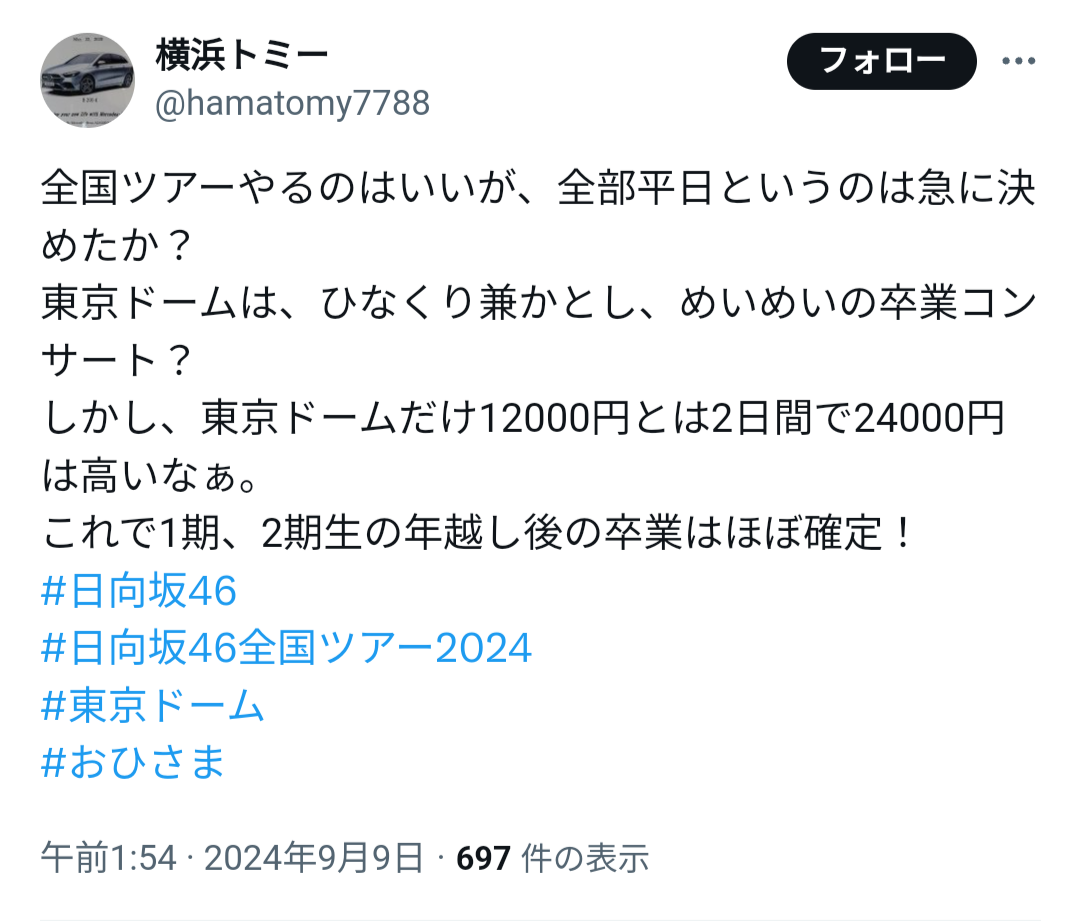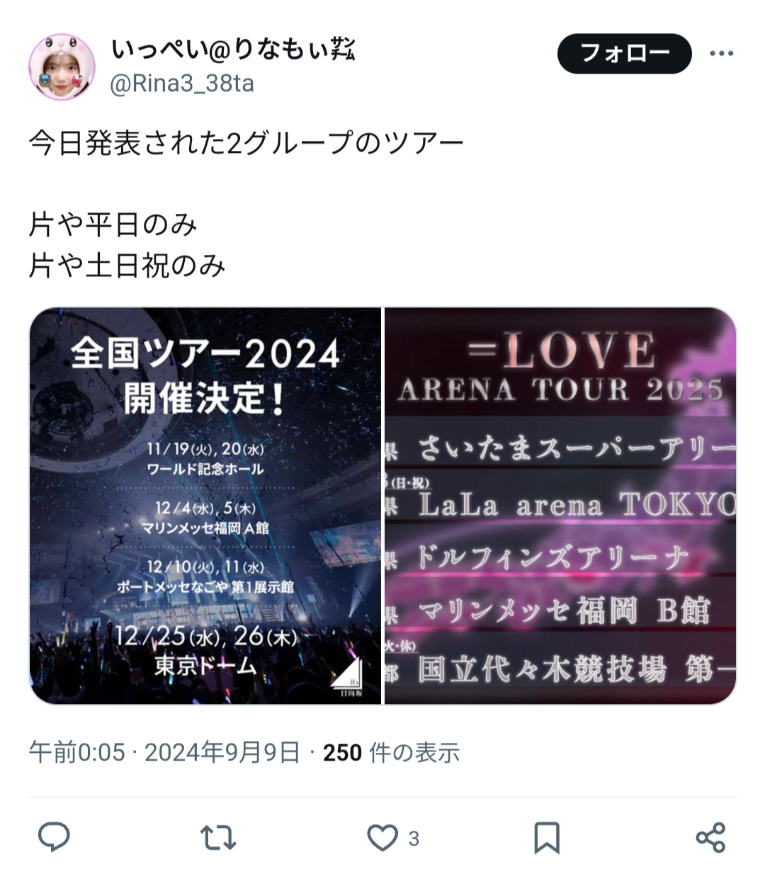 【悲報】グループが凋落すると全国ツアーが平日だらけになることが判明!!!