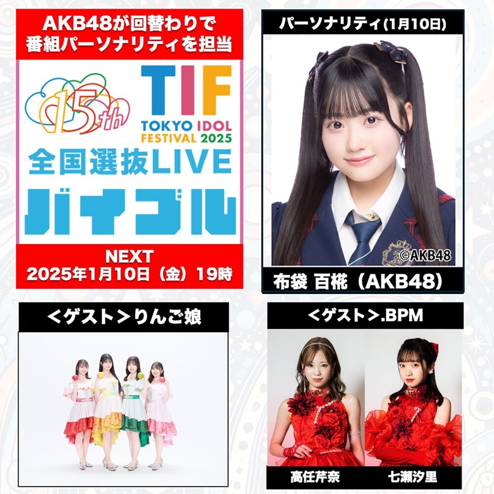 【本日19時】「TIF2025全国選抜LIVEバイブル」MC布袋百椛