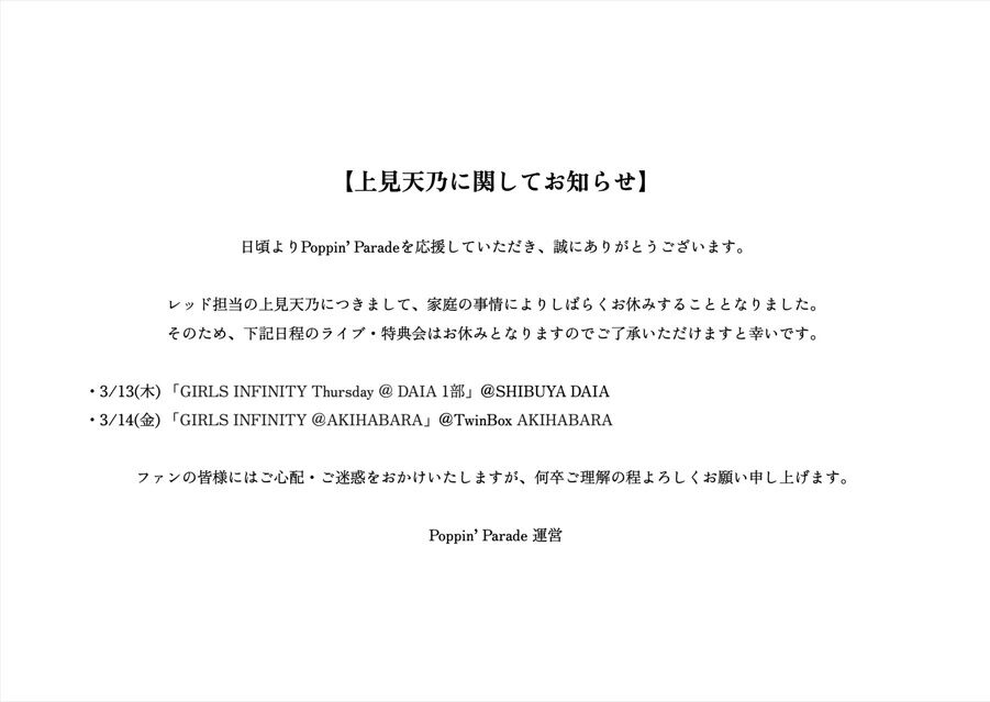 【悲報】元チーム8上見天乃さん、家庭の事情のため活動休止