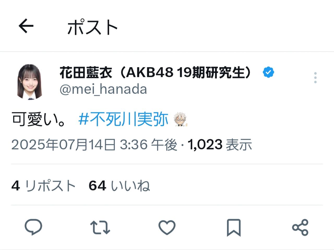 【悲報?】花田藍衣さん、イケメン好きだった模様…