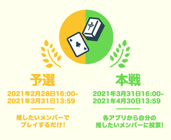 それぞれのアプリの「推しメンポイント」を連動させて、予選を行い各グループ上位3名と、そのメンバー以外の全グループ上位4名(重複はしない)の合計16名のメンバーが本戦に進出。本戦ではユーザー投票を行い順位を決定します。